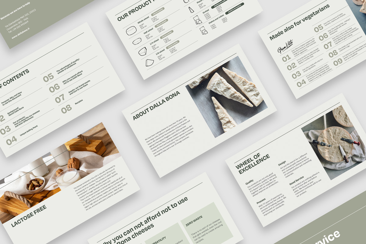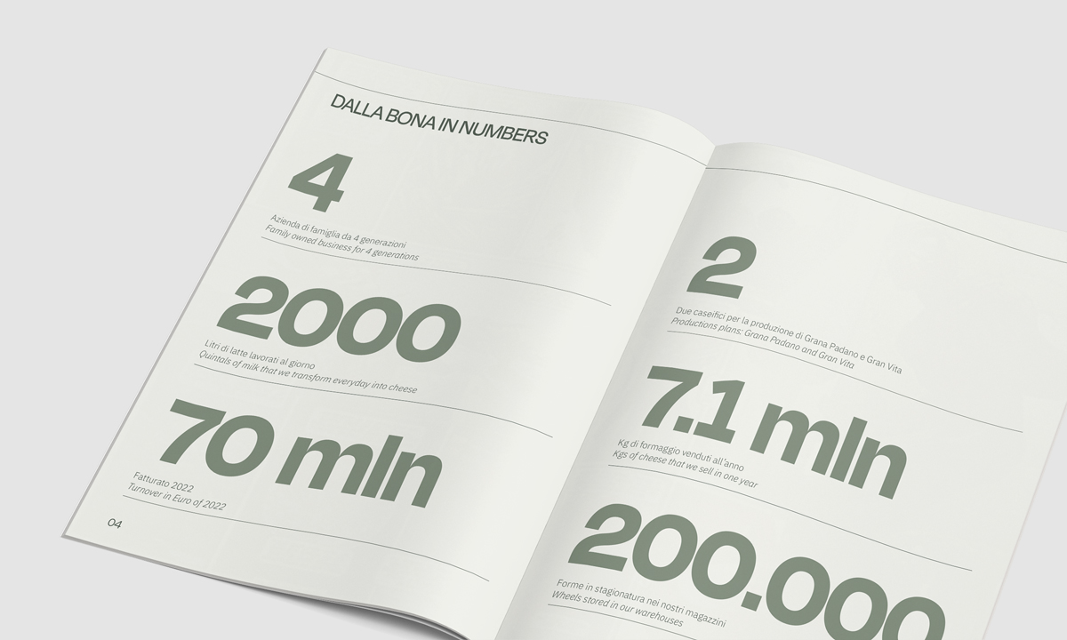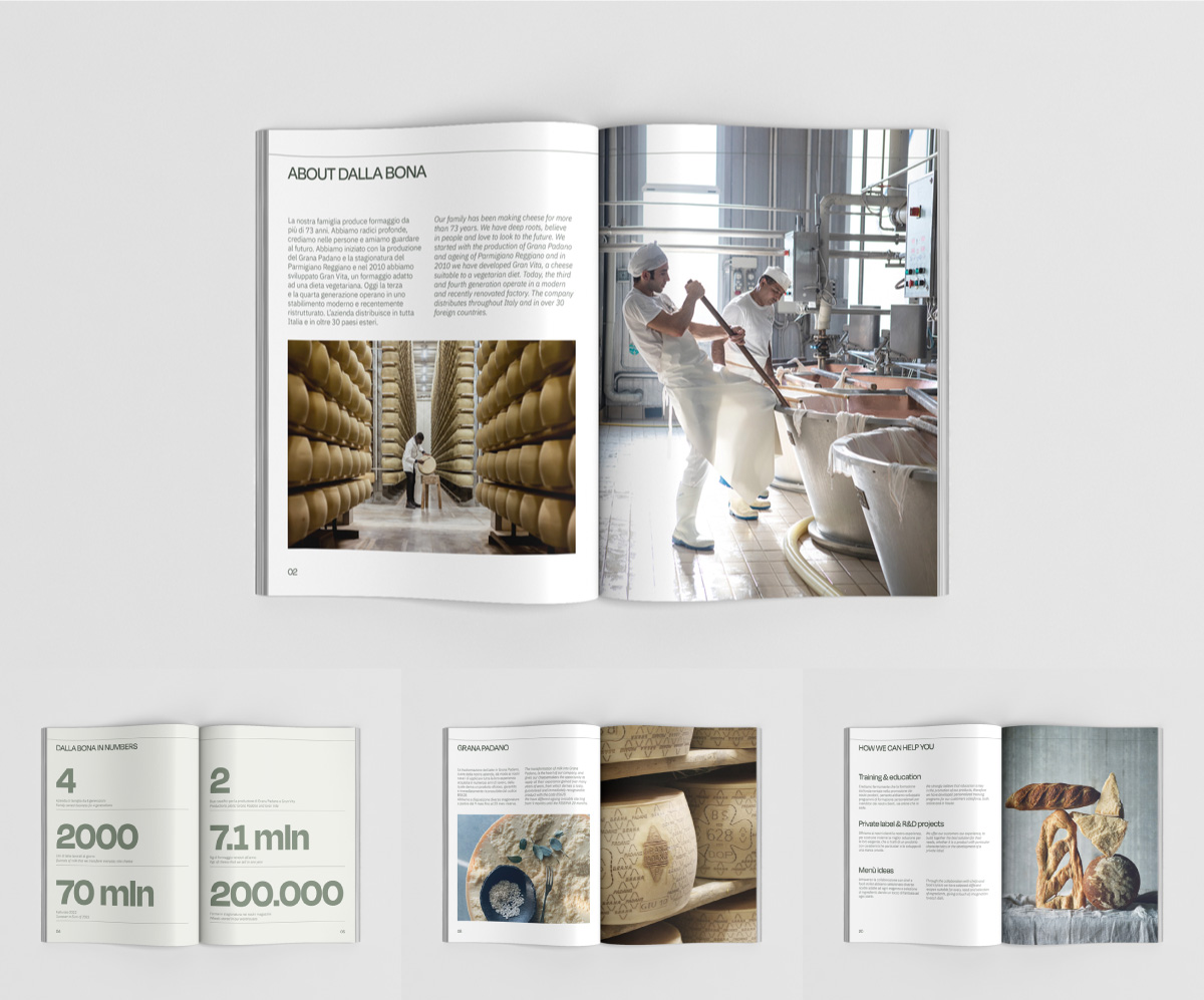 Dalla Bona è una realtà italiana, che lavora da settant’anni alla produzione, stagionatura e commercializzazione dei grandi formaggi stagionati italiani. Emerge una grande attenzione al prodotto, alla storicità e alla tradizione ma anche una grande spinta verso il futuro, un desiderio di distinguersi dagli altri player sul mercato sia dal punto di vista produttivo che comunicativo.